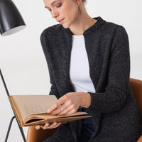 Architectural details modernize this classic shape. Searching for the perfect work cardi? Look no further.