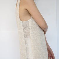 This statement piece features a classic square neckline that is high in the front and lower in the back. Off-set, sheer, side panels give unexpected yet sophisticated flair.